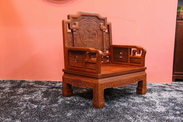 每一件紅木家具的起名,其實(shí)都是一個(gè)產(chǎn)品系列概念與寓意的體現(xiàn),譬如在前面幾篇沙發(fā)系列介紹文章中有提到過(guò)的:表達(dá)福文化、吉祥文化的“富貴祥和沙發(fā)”、“福臨門沙發(fā)”;以歷史文化為題材背景,有借用了明代著名畫家仇英畫作的“漢宮春曉沙發(fā)”以及在座椅背板上雕刻有的王羲之作品《蘭亭序》之“壯志凌云沙發(fā)”;另外還有借鑒了現(xiàn)代元素并表達(dá)了作品寄語(yǔ),特別為新東方總裁俞洪敏先生設(shè)計(jì)制作的“新東方沙發(fā)”。