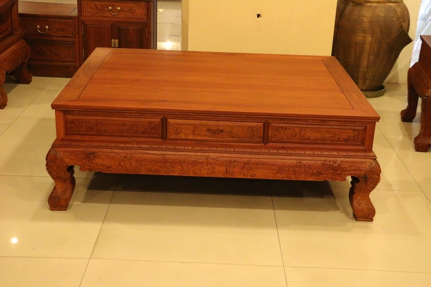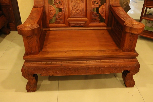 然后是沙發(fā)的座面,溫潤(rùn)細(xì)實(shí),經(jīng)燙蠟工藝處理后的緬花木面更帶有一種淡淡地透亮光澤,古香古韻。再在下方位置,束腰及牙條部分同樣還有幾些人物、花草、幾何紋飾以及祥云之浮雕雕刻,給人以一種如履仙境之感,藝術(shù)畫面感極為強(qiáng)烈!